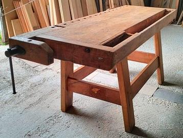 Banco falegname restaurato pronto ad essere usato come esclusivo oggetto di arredamento.