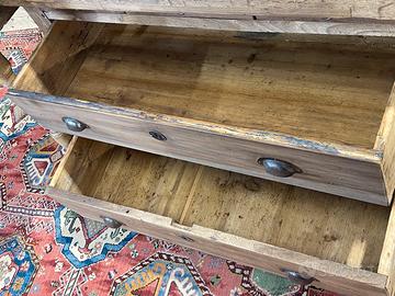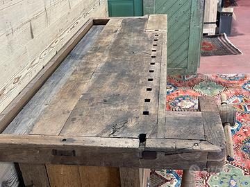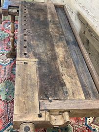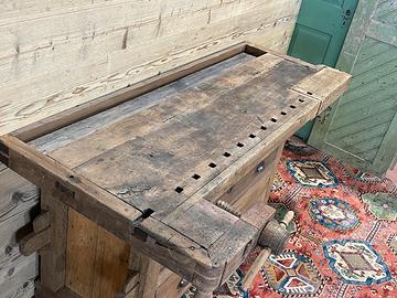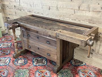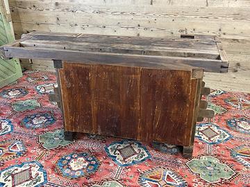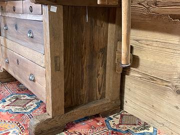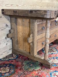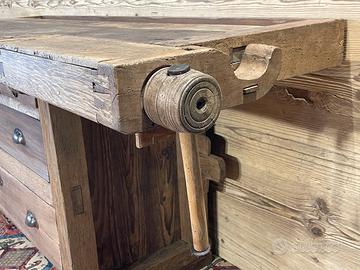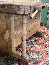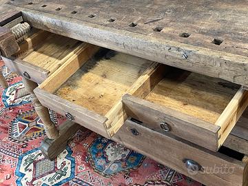 Antico banco da Falegname con cassetti, prevalentemente in noce e rovere. Il Banco è in ordine per quanto riguarda la falegnameria e strutturalmente… Necessita di trattamento e finitura.