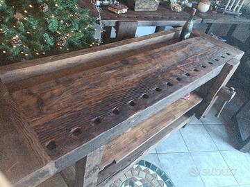 Bancone da falegname massiccio con morsa frontale in acero, sul lato destro. Misura 191x 60 x 81 altezza. Piano robusto e fascinoso, spesso 10 cm, con vano portaoggetti/bottiglie e buchi per le morse. Ritirabile a Moncrivello in provincia di vercelli. il banco e' pesante ma trasportabile comodamente in 2 persone. Trattato con impregnante e finitura cerata. ulteriori info in privato.