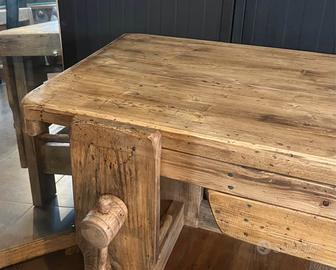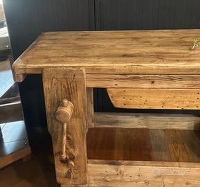 Bellissimo banco da falegname! Caratterizzato dai grossi spessori di legno e da finitura naturale, Mobile versatile, che arreda con stile unico i più vasti ambienti di casa come cucina, bagno ecc... ristoranti, agriturismi, enoteche, negozi, fiorerie.
