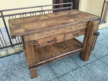 vecchio banco da falegname con due cassetti, restaurato misure larghezza 145 profondità 72 con la morsa 90 altezza 88