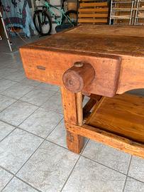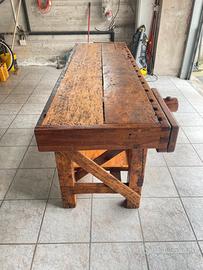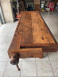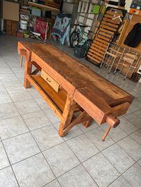 Banco da falegname anni 30/40 restaurato con due morse un cassetto misure: -piano 200 cm. X66 -altezza 84 cm. -piano + morse 220 cm. X 80 cm.