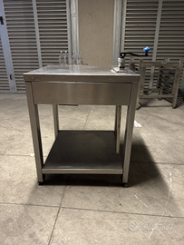 Banco da lavoro per cucine professionali in acciaio inox con apriscatola. 70x 70cm