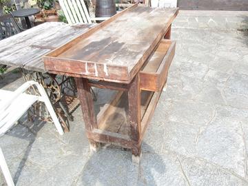 banco da lavoro in legno vintage molto robusto misura cm 150 di larghezza per cm 85 altezza al piano per cm 44 di profondita con cassetto e ripiano sottostante