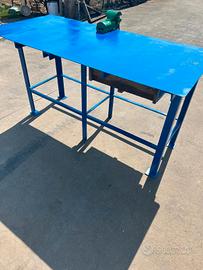 Robusto banco da lavoro in ferro, ideale per officine o lavori intensivi.
