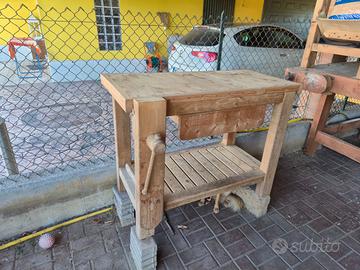 Vendo bellissimo banco da lavoro realizzato a mano da maestro falegname. Il banco è nuovo e realizzato interamente in legno di abete. Dimensioni: 114 x 53 cm, altezza 84 cm.