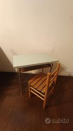 Vecchio banco da scuola materna anni 70 vintage con seggiolina in legno