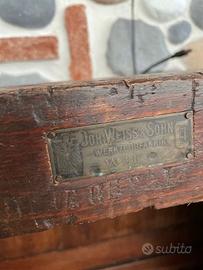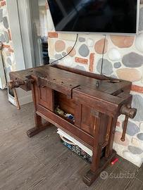 Banco da lavoro antico in legno di Joh. Weiss & Sohn, Vienna dei primi del 900 compreso di morsetti originali.