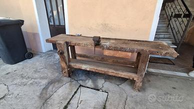 banco falegname Piemonte 1917 . da restaurare. si vende levigato e starlato oppure completamente restaurata 200 x 58 rovere . originale