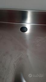 banco in acciaio leggermente macchiato, foro per far passare I fili 160 x 70 h 86