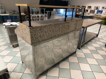 Vendo banco inox aperto 1/4 davanti con marmo in granito L 196 x h 128 x p 83.