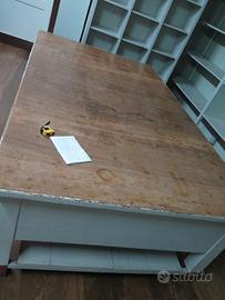 Vecchio tavolo da laboratorio farmaceutico con sei cassetti tutto in ottime condizioni; misure del tavolo 250x150x80H
