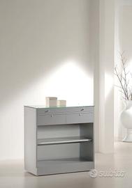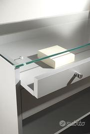 marca "ITALVETRINE" Mod. 20/AL + Mod. 162/MG Top in Cristallo Temperato. Vetri in Cristalli temperati. 2 Ante Battenti. 2 Cassetti + Vano a giorno con 1 Ripiano. 2 Ripiani e Base con Ruote a scomparsa. Cassetto Superiore Grande Estraibile da Esposizione. Dimensioni: 88 × 46 × 90 cm Colore: Silver Vendo per inutilizzo. ------------------------------------- Consegna a Mano. Prezzo NON Trattabile. ------------------------------------- € 250,00