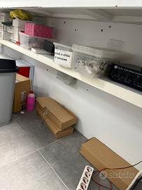 Dietro al banco una grande mensola dove riporre un po di tutto , possibilità a parte di avere due colonne in bianco lucido da affiancare in entrambi i lati del banco , prezzo affare , il tutto si trova a Palermo