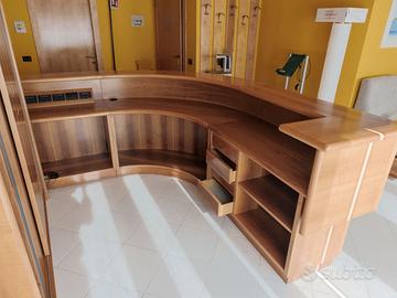 Bellissimo banco reception e armadio in legno massello noce nazionale, tutto in ottime condizioni, pezzo unico realizzato su misura. Provvisto di cassettiera e sistema di cablaggio cavi. Per le dimensioni vedi foto. Solo per chi lo smonta e lo viene a ritirare. š Ritiro a carico del destinatario.