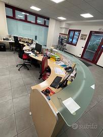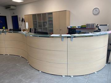 Vendiamo banco reception ufficio in ottime condizioni come da foto. L'intero banco misura lunghezza mt 6.40, larghezza mt 1.80 , altezza mt 1.10. Possibilità di vendita sia intero che in due moduli. Per info contattateci.