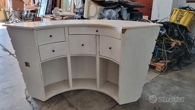 banco reception bianco - legno massiccio. Era in un negozio di calzature; adatto per accoglienza - ha qualche difetto come evidenza nelle foto ma riparabile