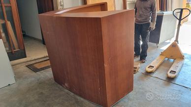 banco reception in noce massiccio - grande e massiccio - ideale come banco per ingresso e accoglienza - presenta alcune imperfezioni come si vede nelle foto ma trattandosi di mobile massiccio possono essere riparate.