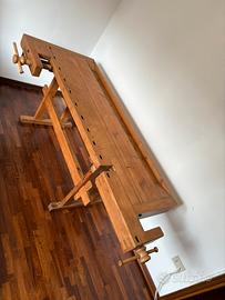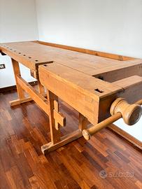 Vendo banco antico da falegname anni 60/70in faggio massello, restaurato completo con finitura in cera naturale Misure: lunghezza 2.10 m Altezza 0,85m Larghezza 0,90m Usato in ufficio come scrivania Possibilità di spedizione
