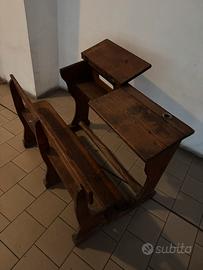 Banco scuola legno abete periodo primi 900 …. Piano invlinato apri ile panca dinseduta fissa. Ben tenuto con normali segni di usura che lo rendono carattestico. Utilizzabile e da arredo Misure L100 H 70 P65