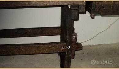 antico bancone da falegname in quercia con 2 morse con filetti in legno alt 80 lun 210 profondita o larghezza nel punto dove si trova la morsa 85 epoca 800