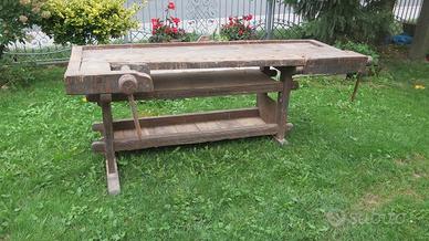 Antico bancone da falegname ideale per arredamento o lavoro Due morse in legno – un cassetto Dimensioni del piano lavoro 205 x 92 CM SPEDISCO