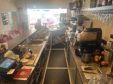 bancone bar completo di retro banco come nuovo ottimo affare 2 vetrine 1 calda per i cornetti pizze 1 a bagnomaria per tavola calda 1 bancone frigorifero con 3 sportelli e 2 cassetti