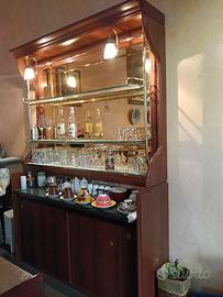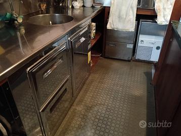 Bancone Bar (altezza 115 cm, lunghezza 258 cm, angolatura 170 cm) completo di frigo , lavastoviglie, macchina per il ghiaccio e vetrinetta annessa: (altezza 240 cm, lunghezza 155 cm, profondità 43 cm).