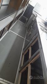 Disponibile bancone bar come in foto completamente in acciaio inox con rifiniture in legno . Completa il tutto una vetrina posteriore a scaffale in acciaio con ripiani in cristallo. In ottime condizioni, lunghezza circa 6 metri . Non esitate a contattare !