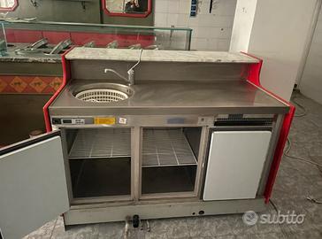 Vendo Bancone Bar con lavandino e frigorifero refrigerato e bancone retro bar dove poggiare la macchina del caffè. Prezzo 1500€