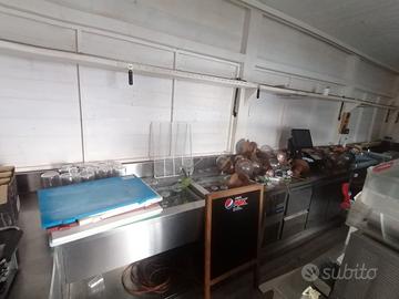 Banconi bar 8 x4 (neutri e refrigerati (200 cm a modulo) + banchi neutri + mobile retro base x macchina caffè con cassetto fondi e cassetto cassa (100x63 cm) + mobile retro base con tramogge rifiuti per diff. (100x63 cm) + rialzata per bottiglieria (175 cm) + 4 vasche per lavaggio complete con leve lunghe + banco cocktail con vasche portaghiaccio, lavello e bordo d'appoggio (300 cm) + banco birra (220cm)+ lavabicchieri + vetrina refrigerata (120 cm) +mobili retrobase (2 x 75 cm cad). Vendo separatamente a partire da 400 euro (per mobile 75cm) oppure in blocco a 13.000.