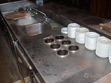 Privato vende bancone bar vintage in acciaio e legno con retro scaffalatura con ripiani in vetro temprato e specchi. Misure totali MT:4,50 di cui bancone MT.3,00 e Vetrinetta MT.1,50. Frigo del bancone con 2 porte e vari cassetti - Vetrinetta separatamente refrigerata. MOTORI FRIGO NON INCLUSI. Utilizzabile anche in Casa/Villa privata che disponga di salone con spazio sufficente o in giardino per rinfreschi e feste. Smontaggio e trasporto a vostro carico. Visionabile a FERRERE AT - PIEMONTE - Contattare Mauro: Tel. 339 640 21 35 Prezzo trattabile solo dopo visione!