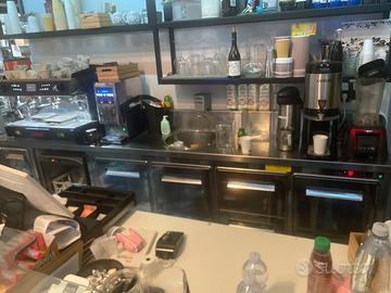 Arredo sette anni di vita, vetrina refrigerata, vetrina refrigerata a pozzetto, retro bar con frigo, ravoli da lavoro , lavello, ecc… da vedere