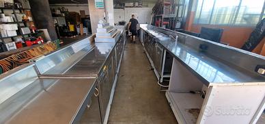 Vendo bancone bar professionale di alta qualità, lungo 8 metri su due lati, ideale per bar, locali, discoteche, pub ed eventi.
