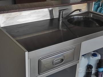 Bancone in acciaio nuovo mai utilizzato. lunghezza 130cm altezza 110cm lato cliente - 96 cm lato interno con pedana 130x 80 cassetto fondi caffe. Perfetto. nessun segno. visibile a Venaria Reale (Torino)