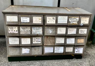 Due vecchie cassettiere di un negozio di ferramenta misura 160 x 55h 90 con ripiani superioni scaffali