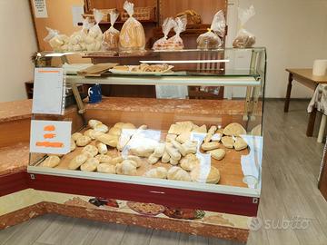 Vendo bancone angolare con vetrina espositiva illuminata, in ottime condizioni, perfetto per panificio, gastronomia, bar o negozio alimentare.