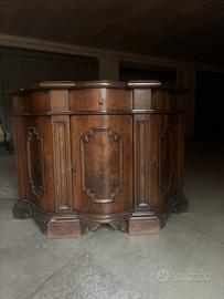 Il mobile ha una struttura solida e di grande presenza, con linea frontale bombata e dettagli decorativi tipici dello stile classico.
