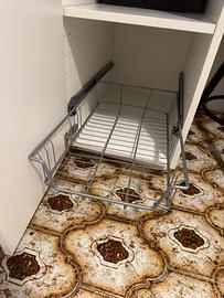 L’interno delle ante è formato da 1 ripiano in alto in legno, e sotto da un carrello scorrevole per prendere il contenuto in maniera agevole.