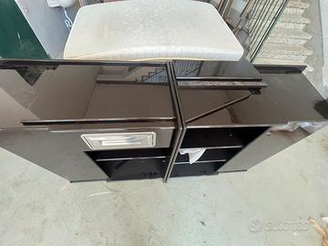 Vendo bancone da bar dal design moderno, colore nero lucido, ideale per locali, pub, lounge bar o anche per uso domestico. Il bancone è composto da più moduli con ripiani interni comodi per riporre bottiglie, bicchieri e attrezzatura da bar. Presente anche vano con cassetto frontale. Struttura solida e resistente. ✔ Ampio spazio interno con ripiani ✔ Design elegante e professionale ✔ Facile da pulire ✔ Perfetto per bar, eventi o taverne Condizioni buone: presenta normali segni di utilizzo ma è perfettamente funzionante. Prezzo trattabile e spedizione ci pensiamo noi Prezzo trattabile