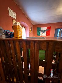 Vendo per inutilizzo bancone bar per casa fatto in bancali di legno con due poltrone da bar (vedi foto 3). Bancone tenuto sempre bene con impregnante e smalto lucido. Usato per due anni ma come se fosse nuovo. Per info contattatemi su chat.