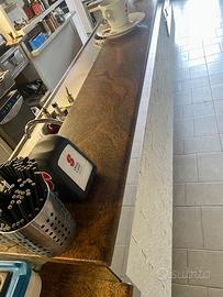 bancone da bar da 5 metri, ottime condizioni, completo di vetrina per dolci, frigoriferi a tre sportelli, con motore esterno, cassettiera refrigerata, piano in granito.