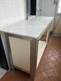 Piano superiore: Vero marmo di alta qualità, ideale per impastare o come superficie d'appoggio resistente e igienica.