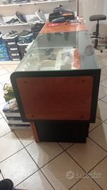 Bancone da locae in legno ciliegio, con vetrina espositiva lunghezza 2m e alto 90cm, prezzi indicativi e trattative telefoniche