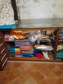 bancone da negozio con 5 cassetti ,il primo con chiusura a chiave ,tatto interamente da falegname ed usato per negozio di fiori ,ma possibile uso per altri negozi o laboratori,ecc.. lunghezza 3 metri per 80 di piano lavoro,alto97 cm ,con 6 piani 4 in vetro molto robusto come il piano lavoro. e due più bassi in legno ,no perditempo è un ottimo bancone fatto da artigiano e pagato 2000 euro nel 2010 se interessati contattatemi al numero di telefono 345/2184826 Daniele no perditempo per il prezzo ci accordiamo
