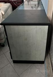 Vendo bancone da negozio in legno chiaro effetto rovere, perfetto come banco cassa o postazione front office in ambienti commerciali o studi professionali. Il mobile è compatto ma funzionale, con vani interni ideali per riporre documenti, cassetta contanti o materiale da lavoro.