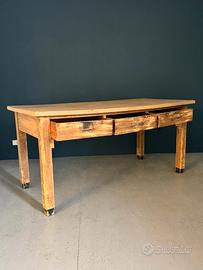 Proponiamo importante bancone da sartoria d’epoca, ideale come tavolo da lavoro, banco espositivo o grande scrivania dal forte carattere.