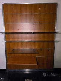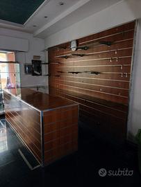 Bancone con due cassetti scorrevoli e 3 pareti espositive color noce