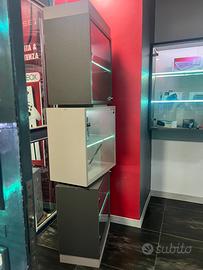 Vendo bancone in legno massello con piano superiore in Corian, vetrine in legno massello con led interni e 2 colonne composte da 3 vetrine cubiche girevoli, per qualsiasi tipo di attività commerciale e/o casa.
