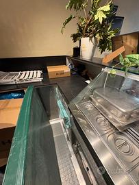 Per cambio attività si vende Bancone in ottimo stato con vetrina riscaldata con 12 contenitori, cella refrigerante, lavabicchieri, retro banco e piani in corian. Le misure sono in allegato nella pianta. Si richiede ritiro e smontaggio a carico dell'acquirente, prezzo trattabile